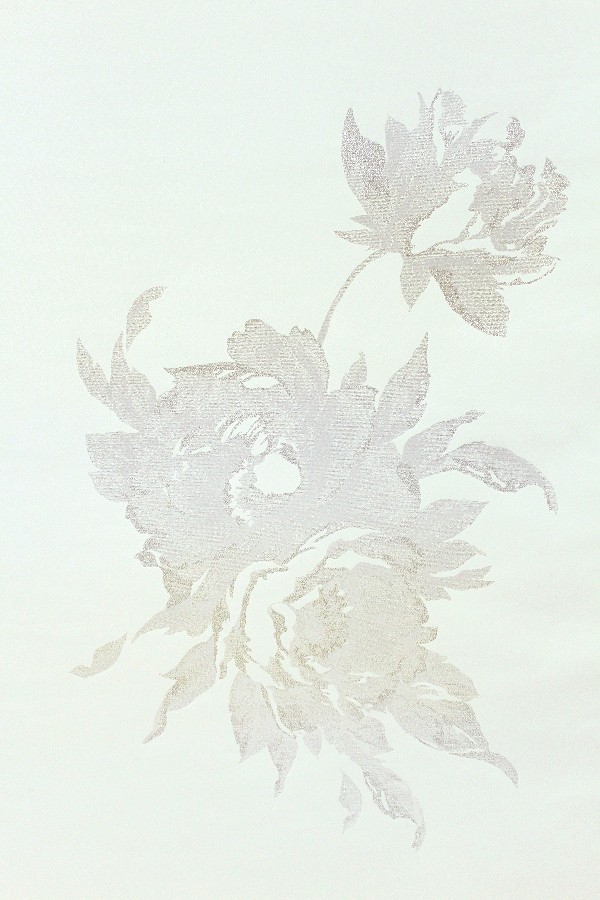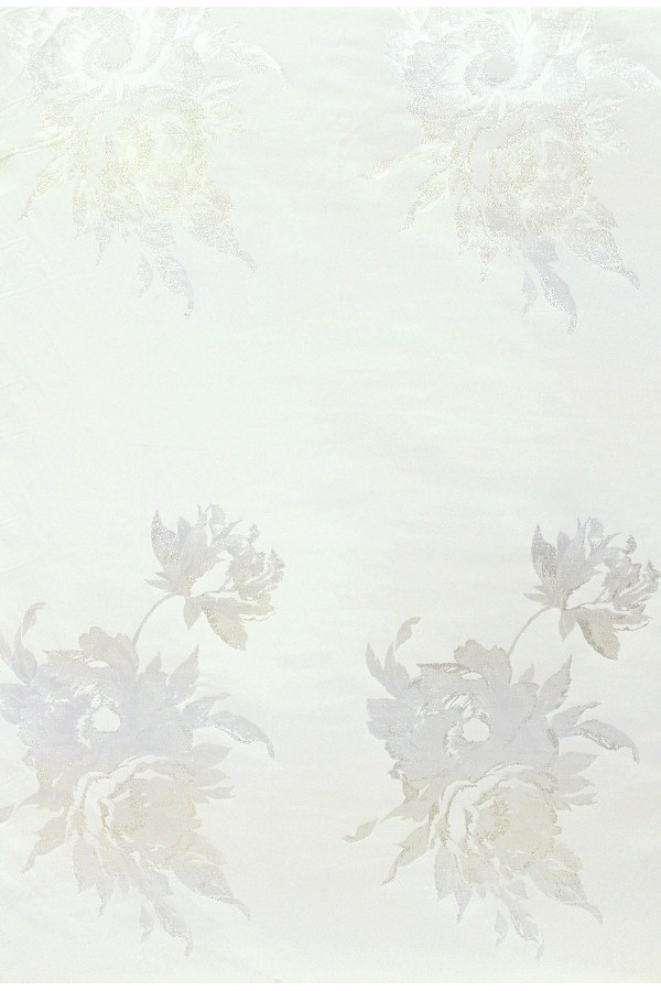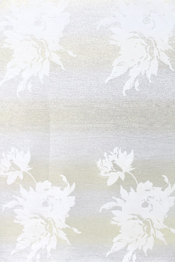 Tecido dupla face, que arma, com desenho em grande escala e riscas douradas e prateadas em degradé. O toque é agradável. |