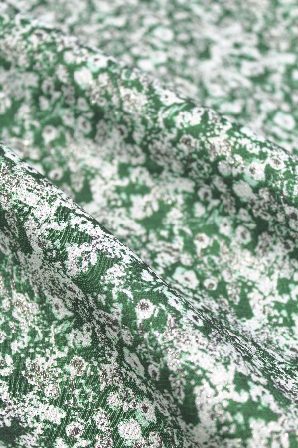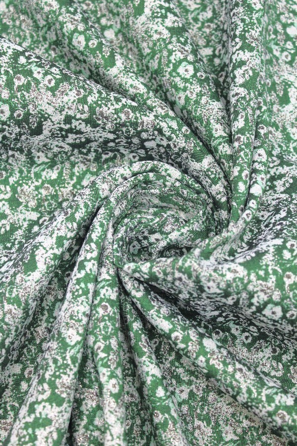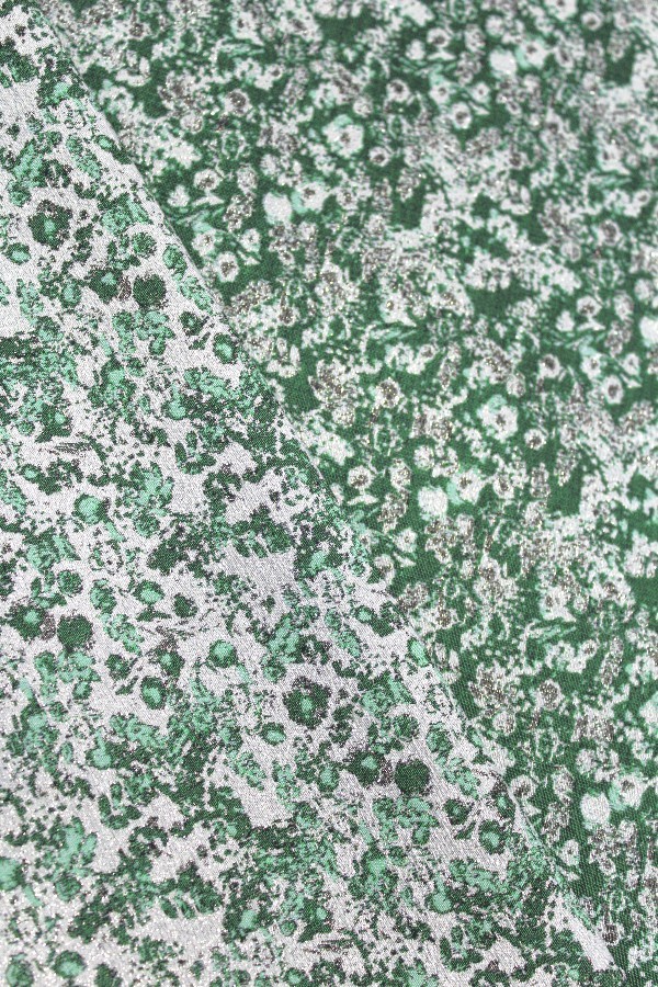Verde escuro, verde claro, lurex dourado e bege. |
