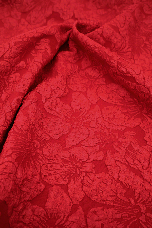 Tecido leve, com padrão em relevo. Arma e é maleável. |