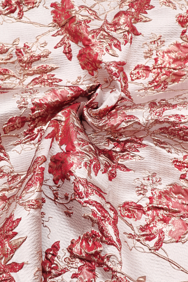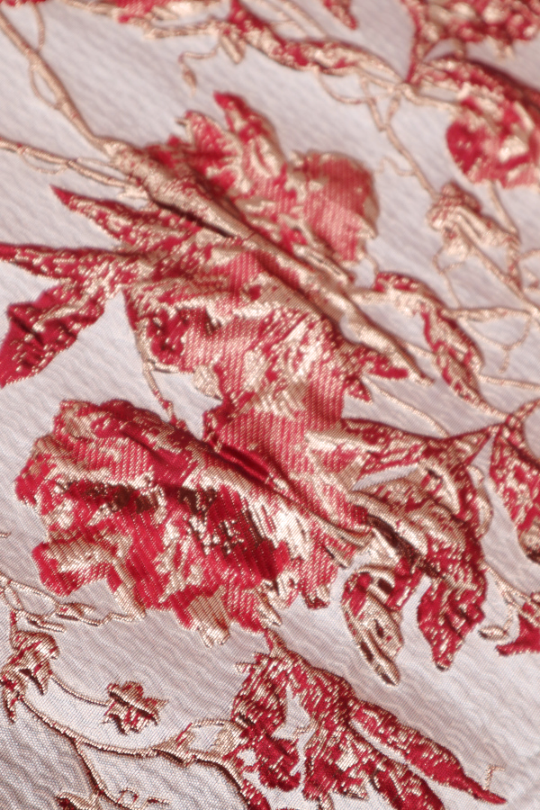 Tejido ligero, con patrón en relieve. Tiene estructura, es maleable y muy brillante.