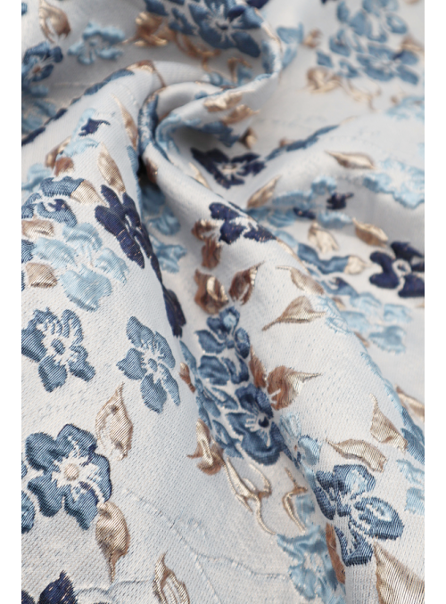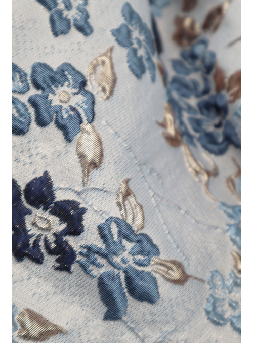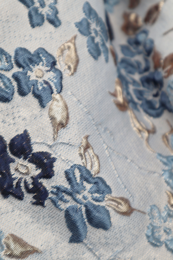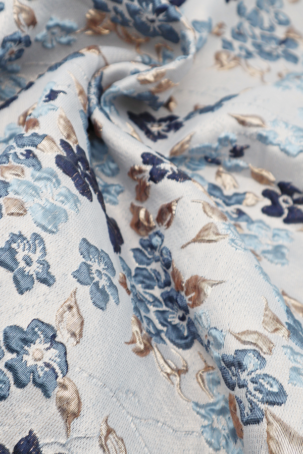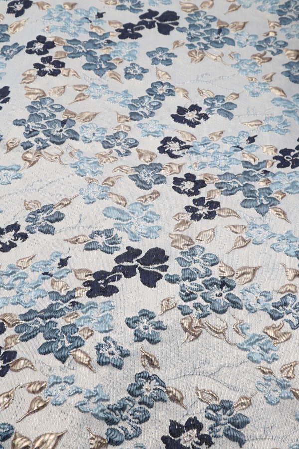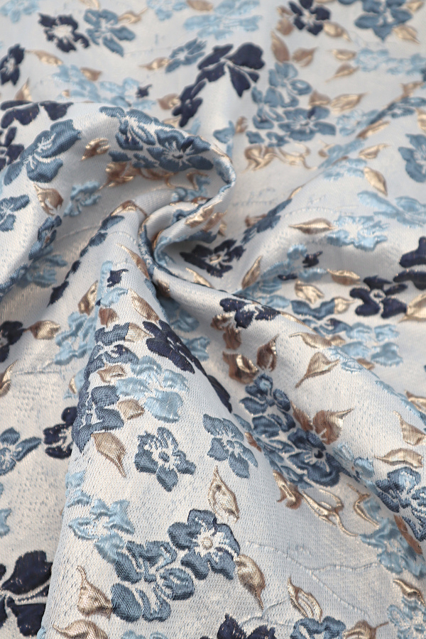 Tecido que arma, leve, com textura as riscas e desenho em relevo. |