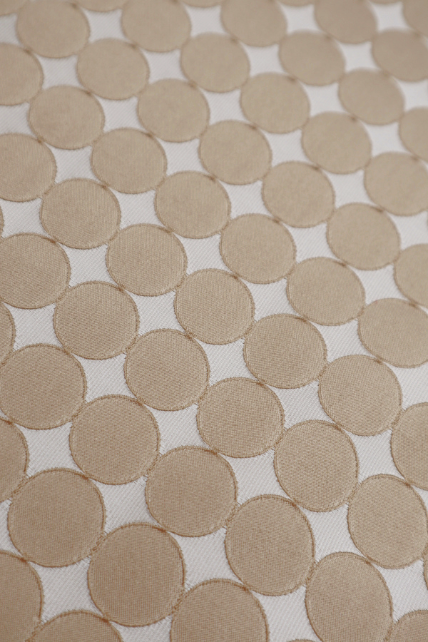 Tejido estructurado con un sutil relieve que resulta agradable al tacto. Presenta un ligero brillo. |
