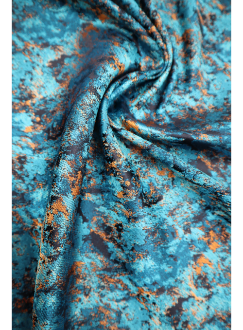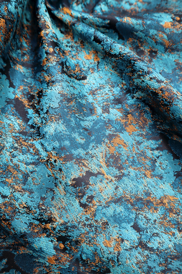 Una tela que mantiene ligeramente su forma, con un diseño similar a la acuarela, brillo y un tacto agradable. |