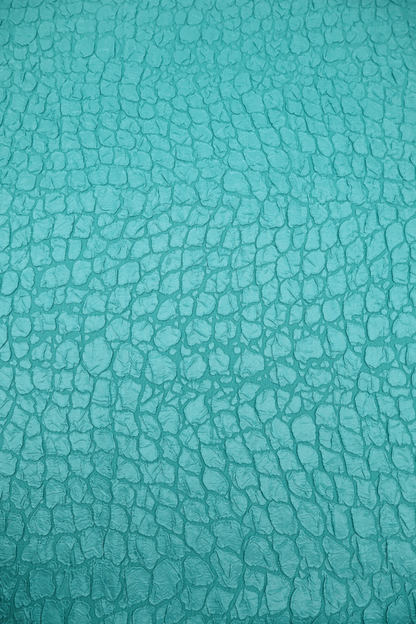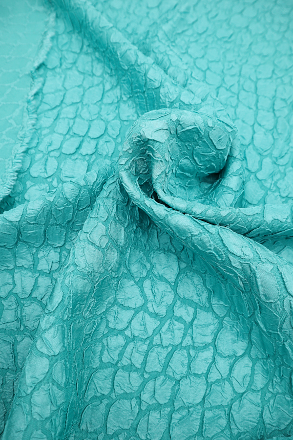 Una tela que mantiene ligeramente su forma, con un diseño que imita el cuero, tiene brillo y es agradable al tacto. |
