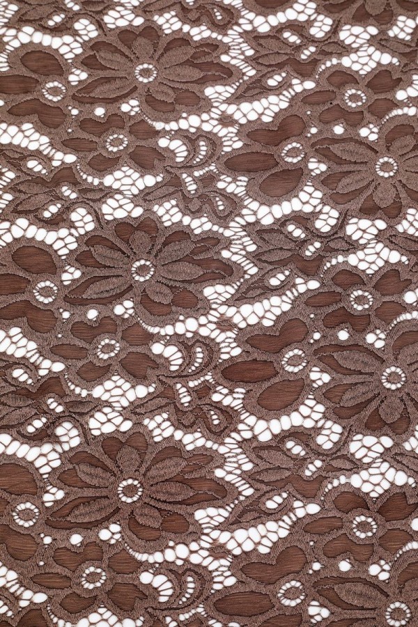 Renda em malha com bom cair, elástica e macia ao toque. |