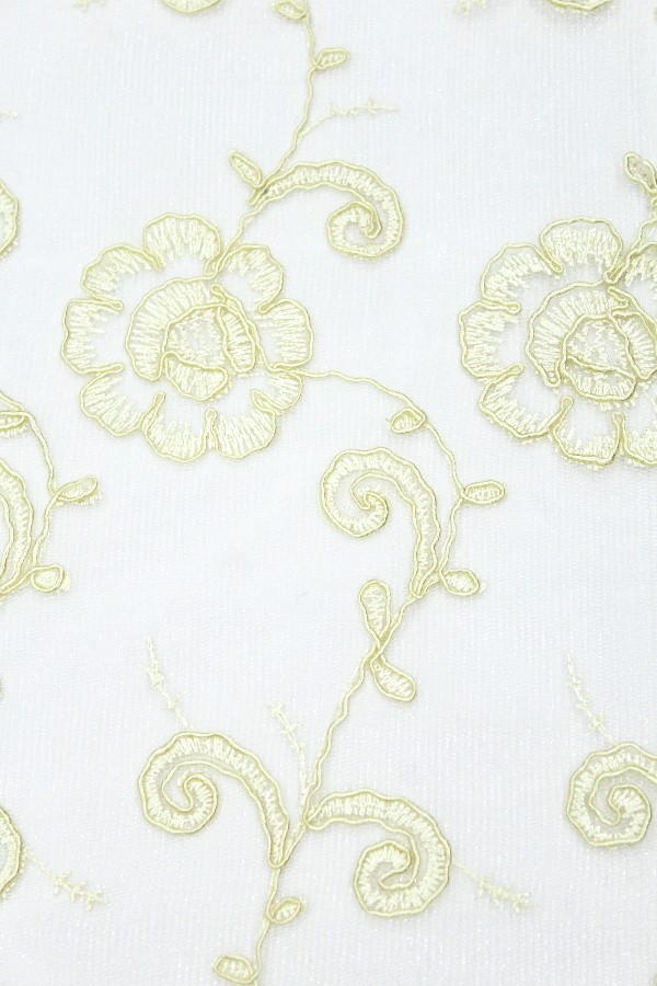 Renda do tipo tule bordado, com cordonnet, leve e agradável ao toque. O remate é igual dos dois lados. |