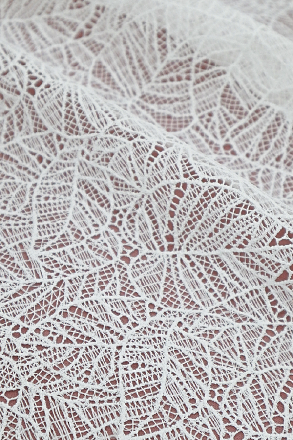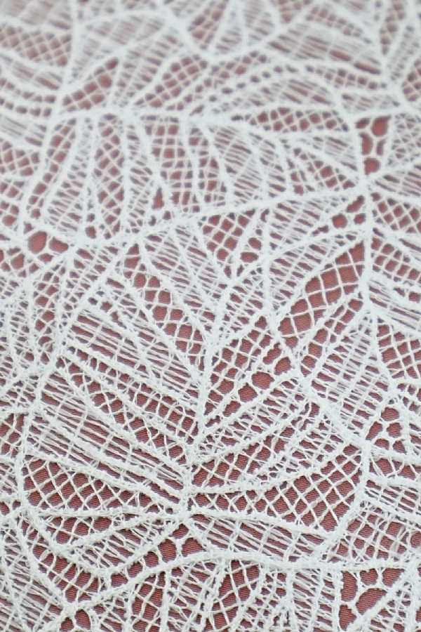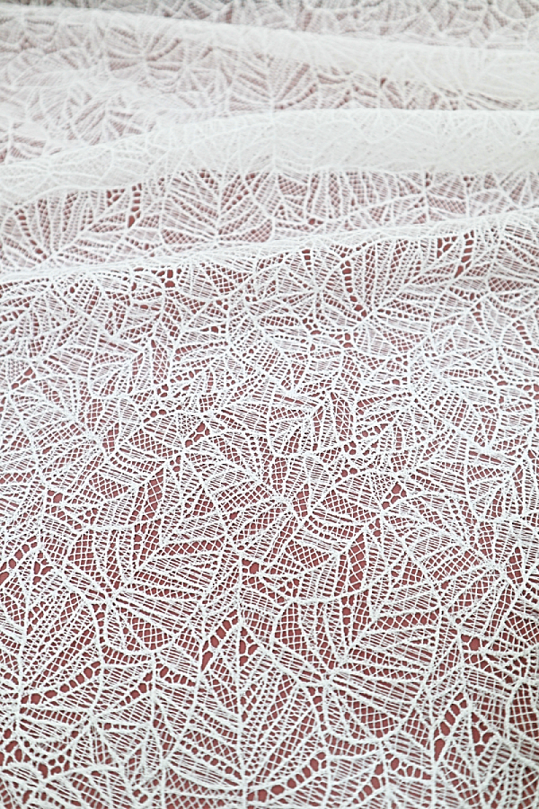 Renda leve, macia e delicada. Repete o padrão de cima a baixo. |