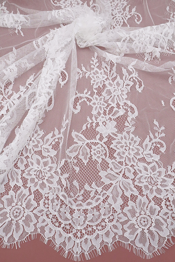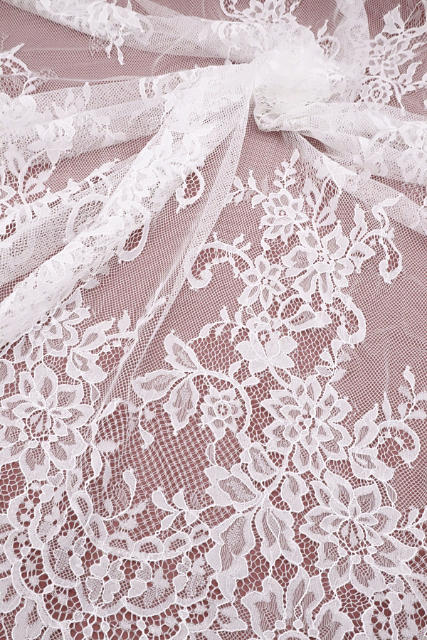 Renda Chantilly muito suave, delicada e leve. O remate é igual dos dois lados.