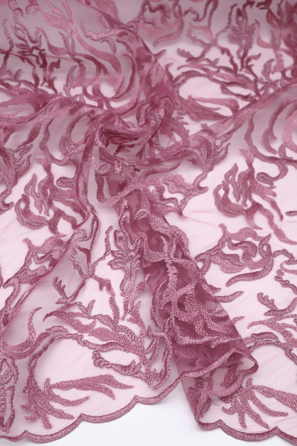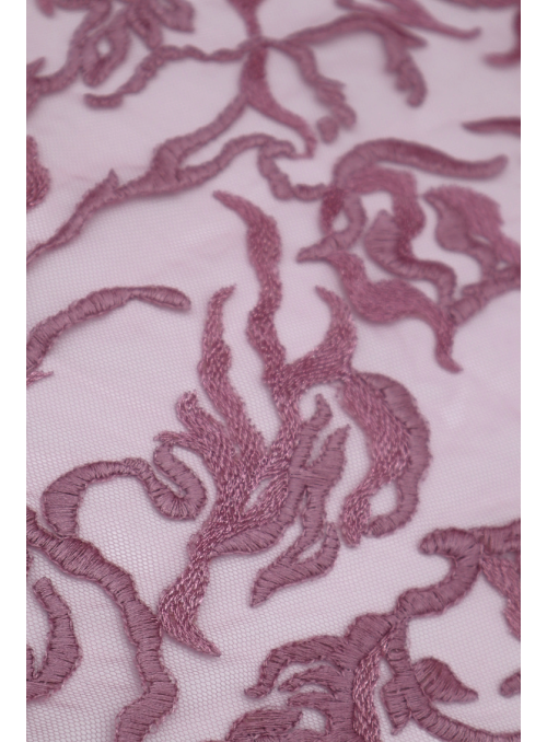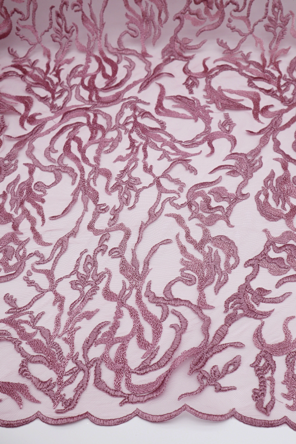 Tul bordado con ramajes sin pedrería. Con remate en ambos lados. |