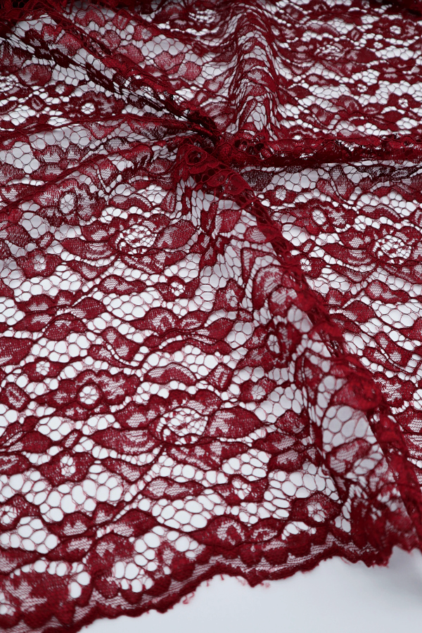 Renda com detalhe de cordonnet, agradável ao toque e maleável, com remates iguais dos dois lados. |