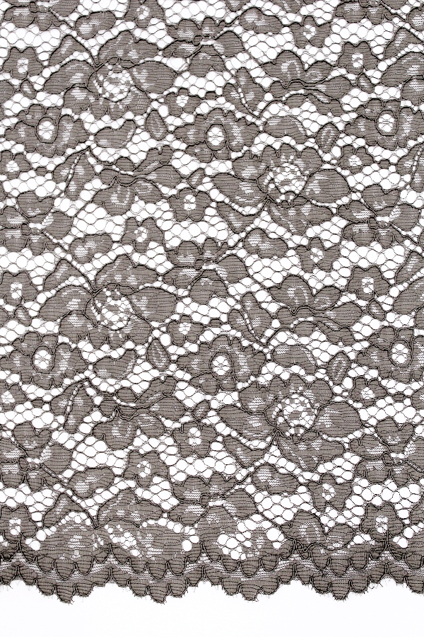Renda com detalhe de cordonnet, agradável ao toque e maleável, com remates iguais dos dois lados. |