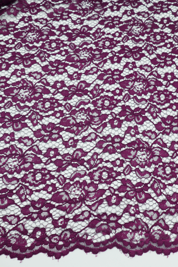 Renda com detalhe de cordonnet, agradável ao toque e maleável, com remates iguais dos dois lados. |