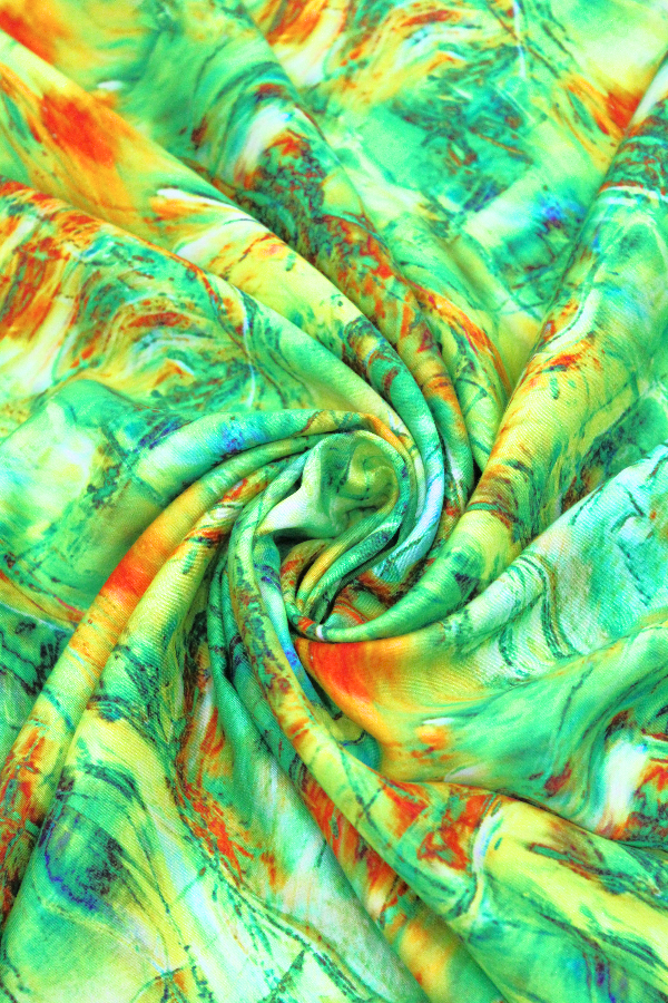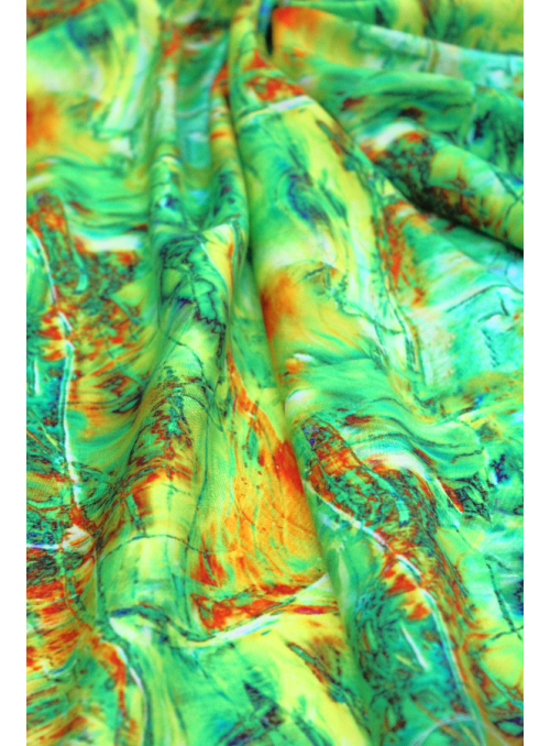 Tecido com estampado floral e abstrato. Leve, fino e fluído, com um toque macio e suave. |