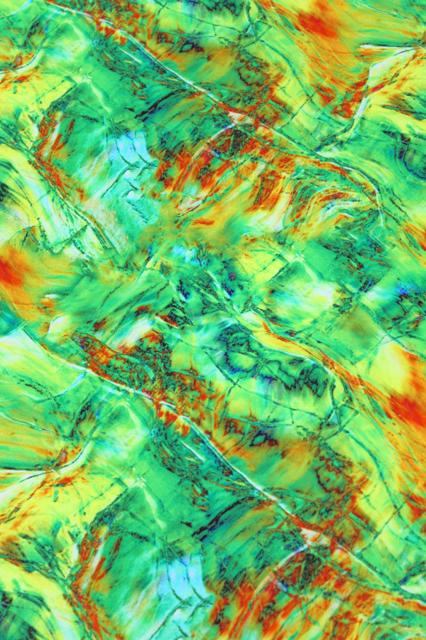 Tons de verde, amarelo e laranja. |