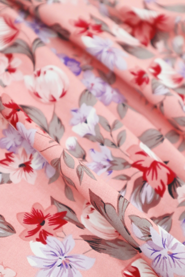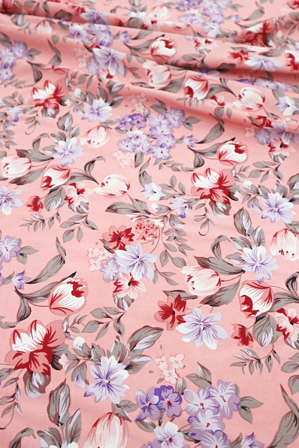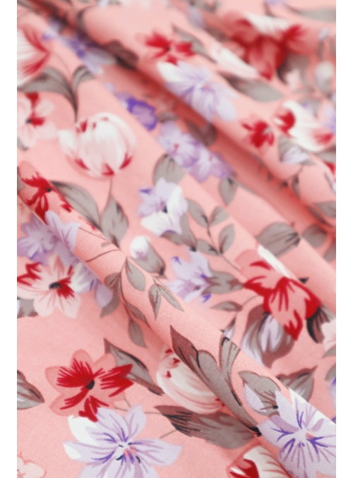 Tecido toque de seda estampado com flores, leve, fino e fluído. |