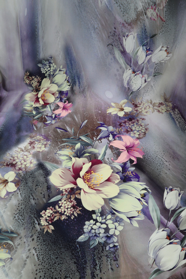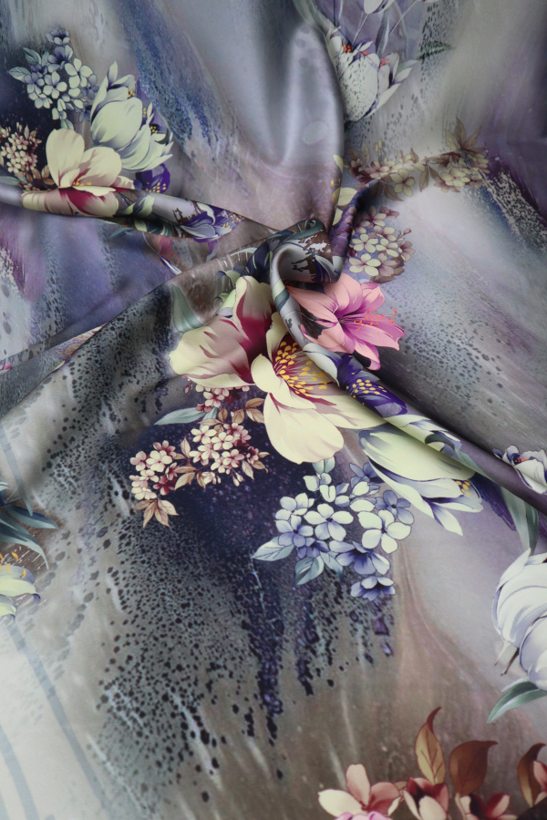 Tejido con tacto de seda estampado, ligero, fino y fluido. |