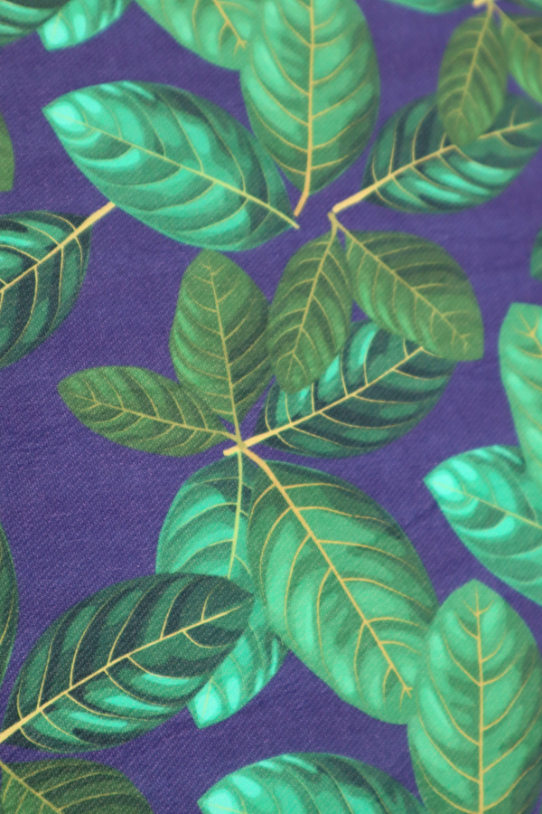 Tonos de verde con fondo azul denim. |