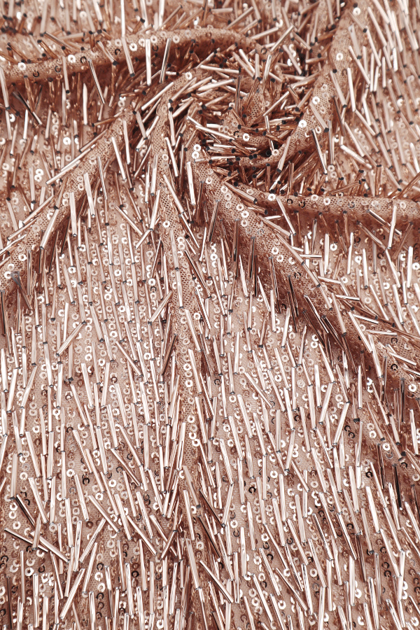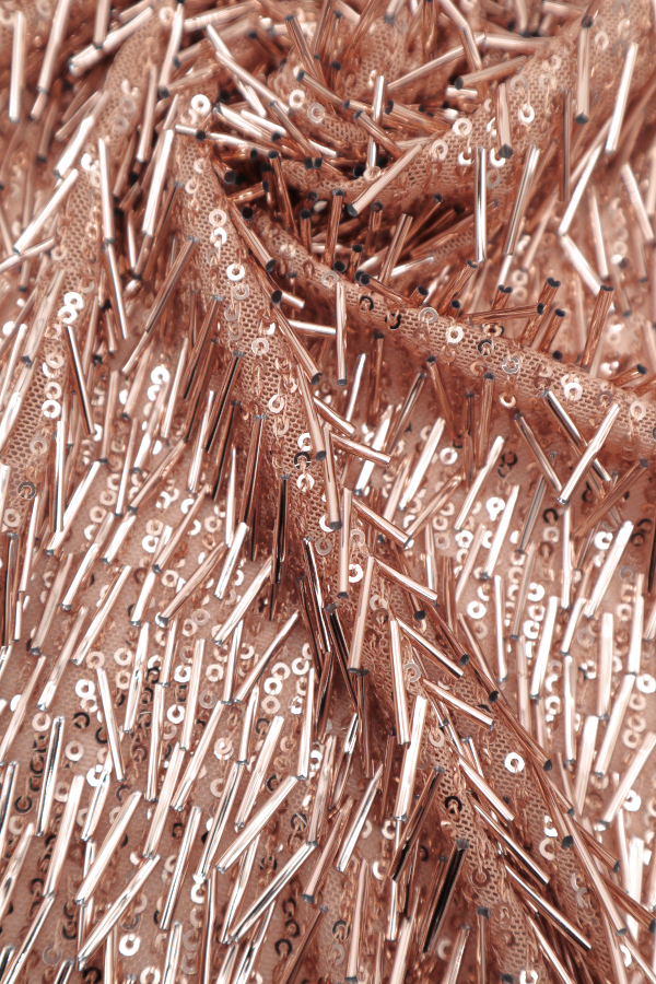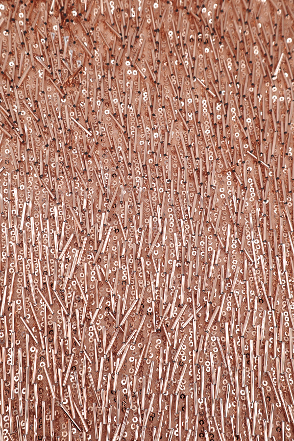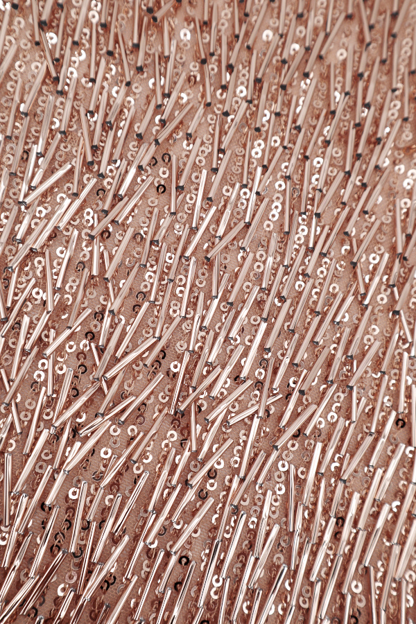 Malha com lantejoulas que preenche todo o tecido. |