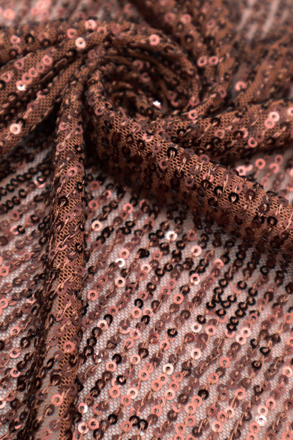 Tecido de lantejoulas suave, muito maleável e elástico, com efeito de riscas. |