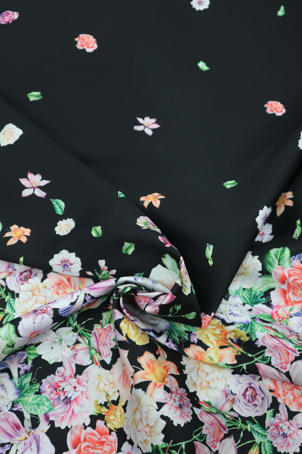Una tela sustancial que agrega forma, con un estampado que crea un dobladillo más o menos completo. |