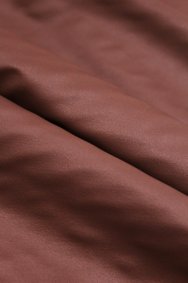Tecido com feitio de imitação de pele, maleável, com leve elasticidade e agradável ao toque. |