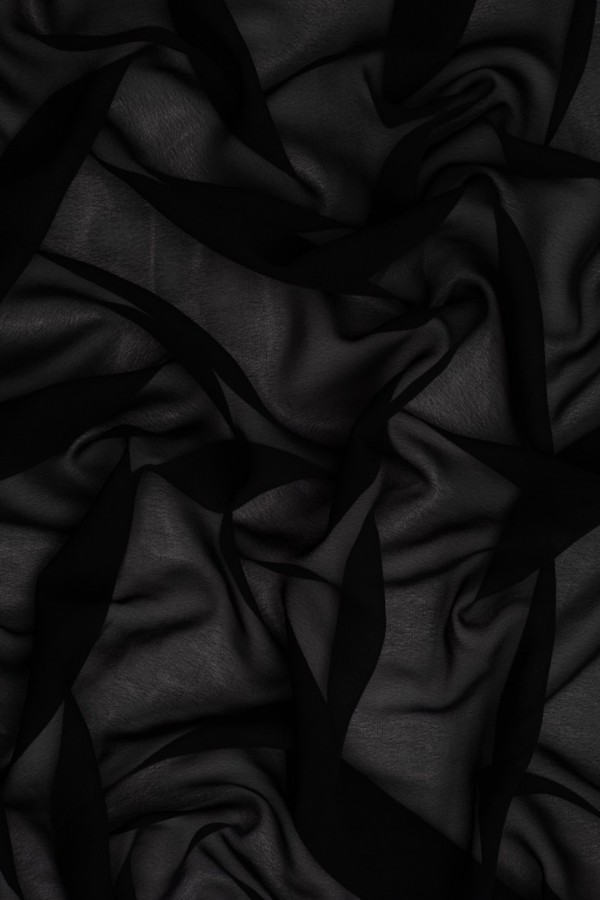 Tecido leve, fino, sedoso, arma e tem transparência. |