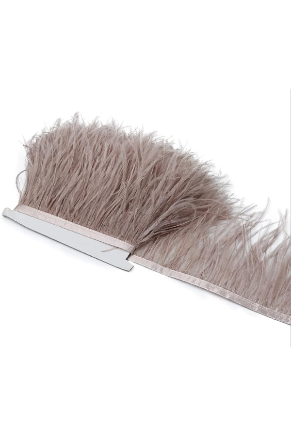 Aplicação composta por fita de cetim Azul e penas de avestruz. Muito leve e suave. |