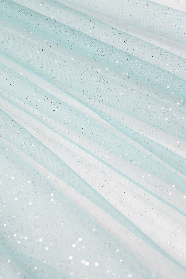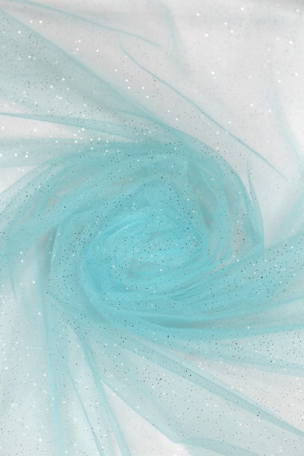 Tule com Glitter, fino, leve e elástico, com toque suave. |