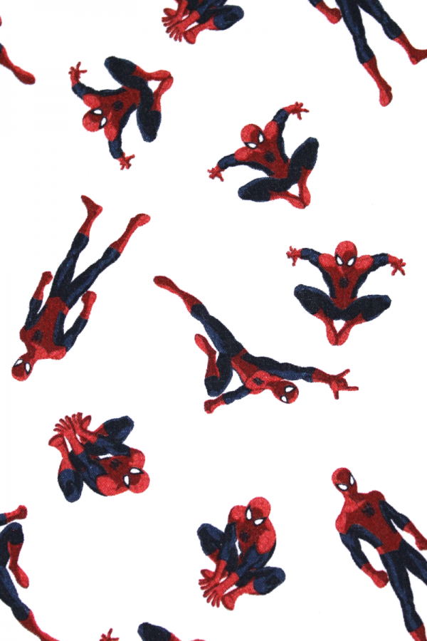 Tecido com estampado do Homem-Aranha. Macio, fino e ligeiramente transparente. |