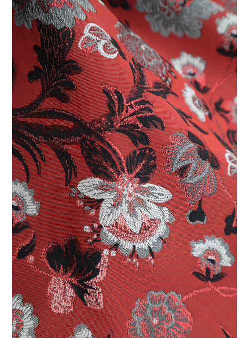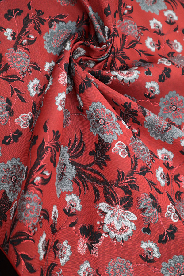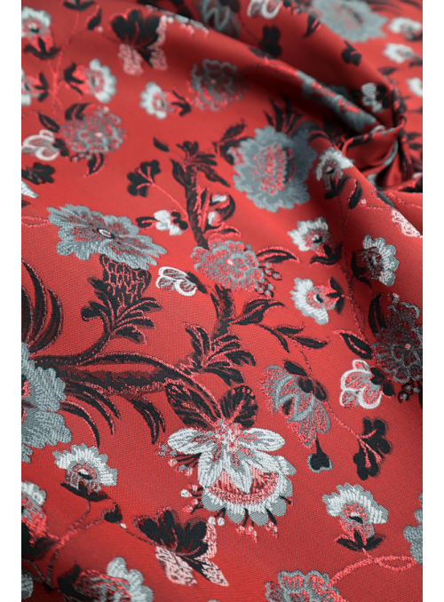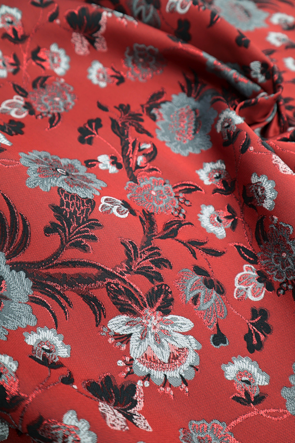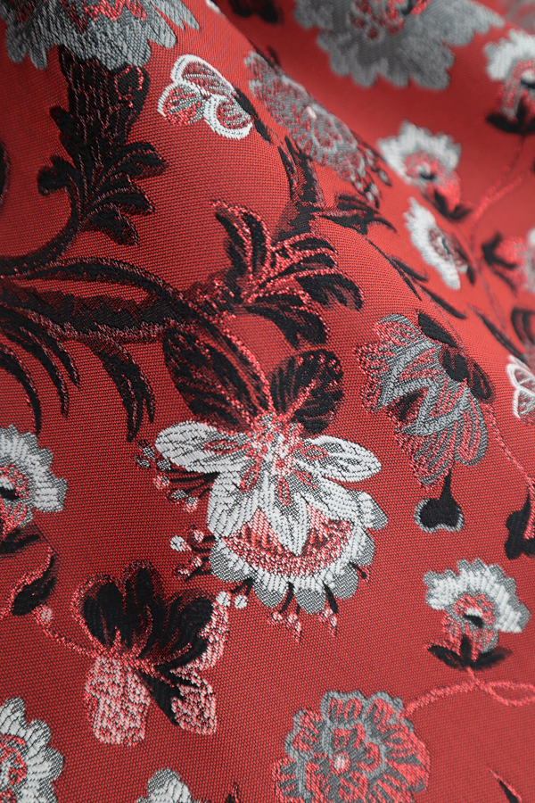 Tecido que arma, com desenho em leve relevo e agradável ao toque. Com leve lustro e fios brilhante.  |