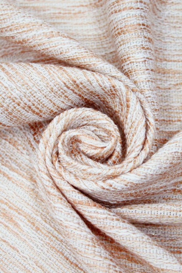Tecido Chanel com brilho subtil, agradável ao toque e maleável. |