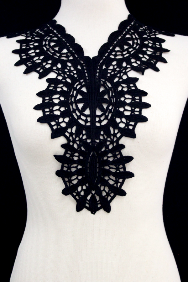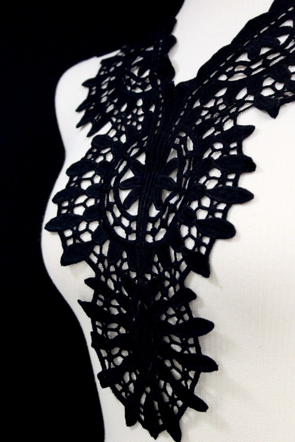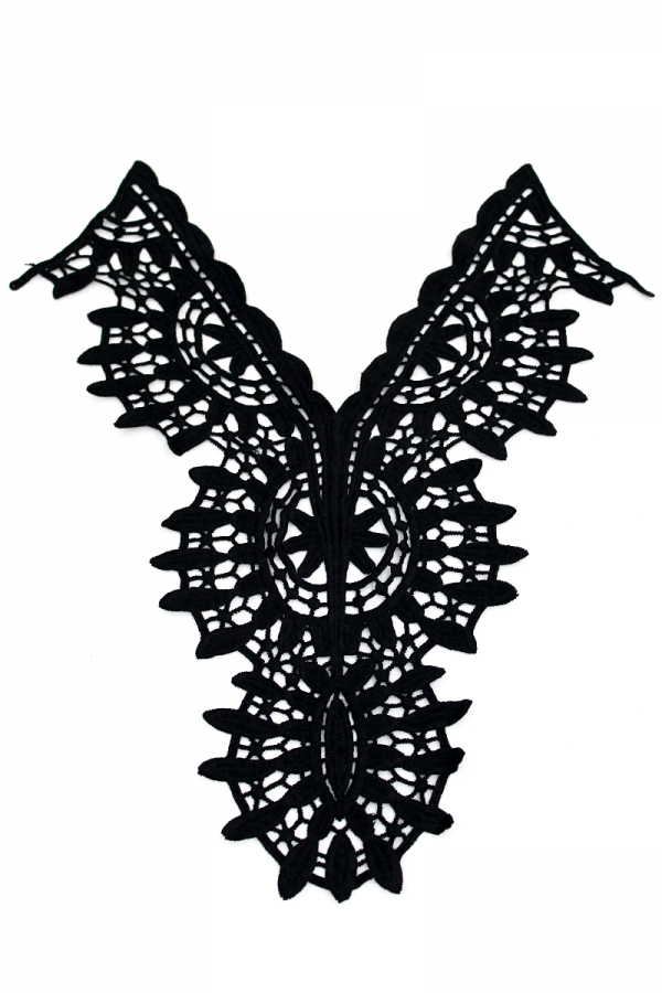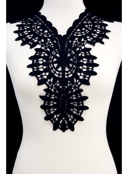 Aplicação do tipo renda Guipure, leve e agradável ao toque. |