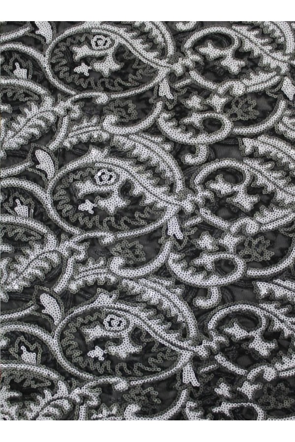 Tule bordado, suave e leve, com lantejoulas aplicadas.