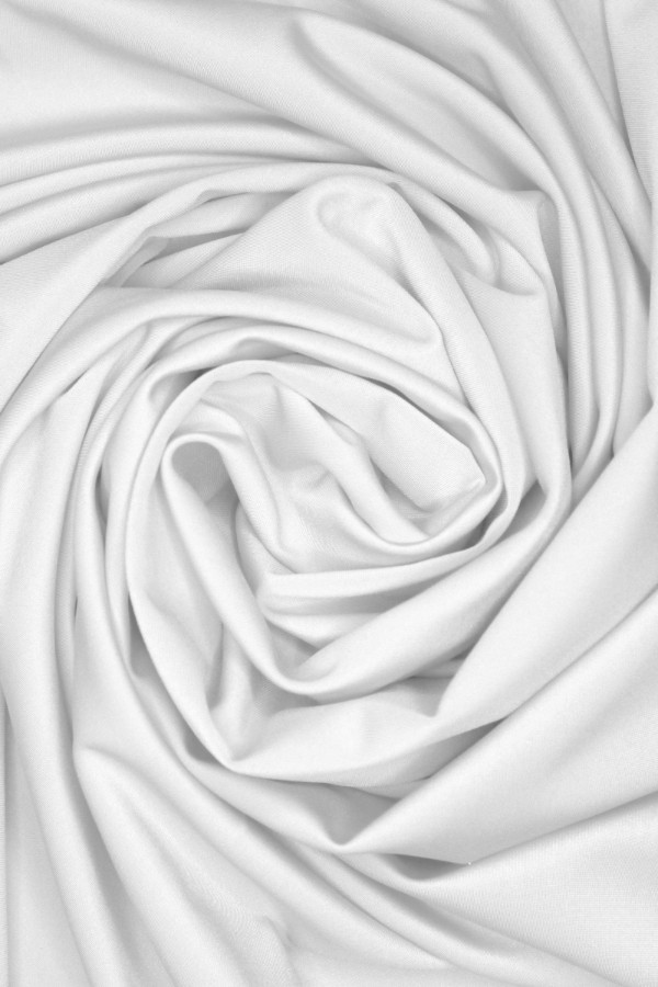 Malha com muita elasticidade, com algum lustro e macia ao toque. |