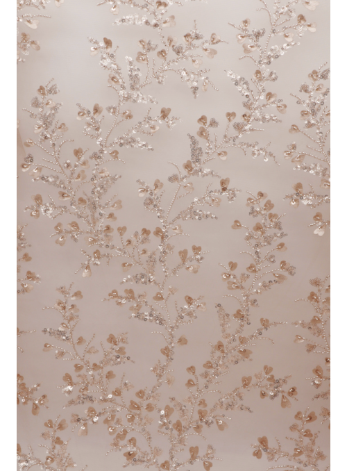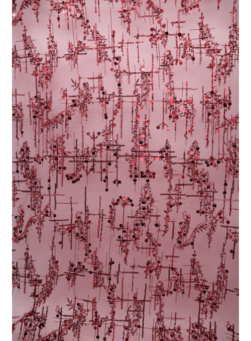 Tecido com plissado subtil e uniforme, leve e fino, agradável ao toque, com transparência e bom cair. |