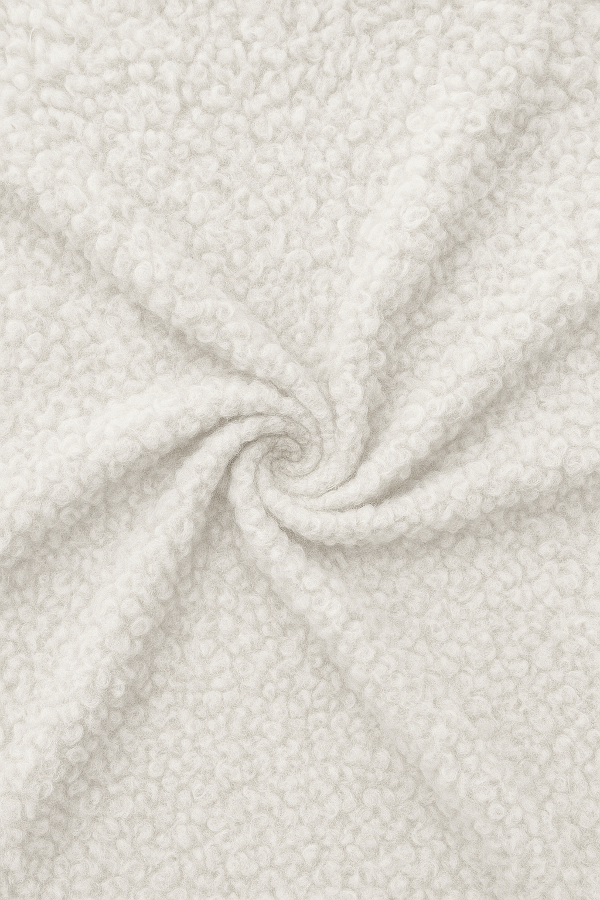 Pelo a imitar a lã de ovelha. Macio e suave. |