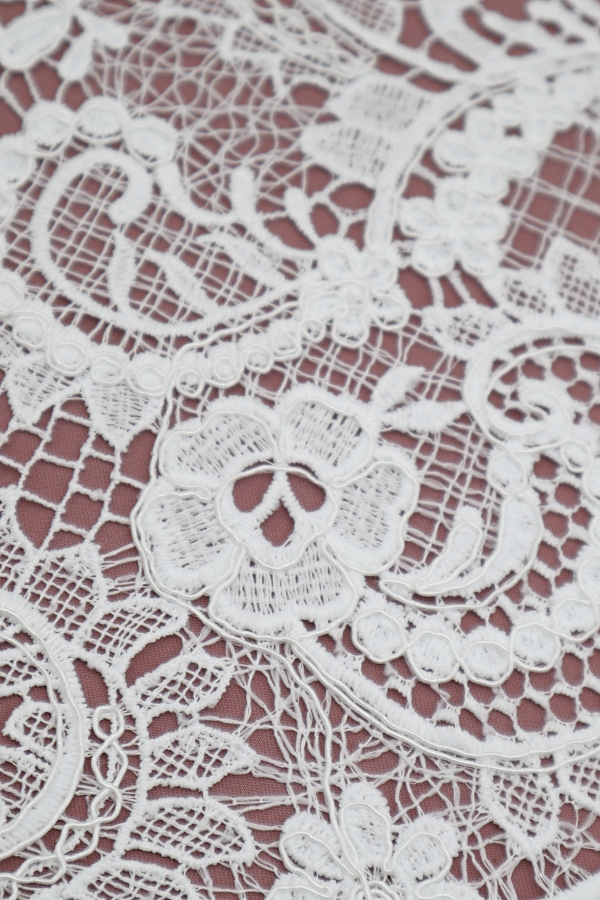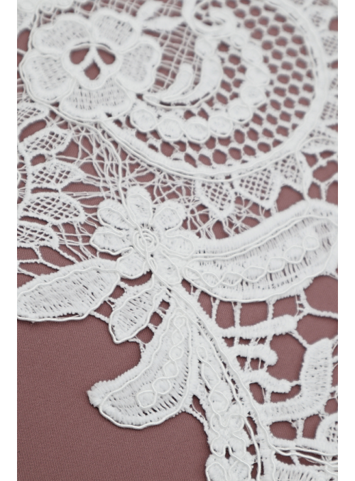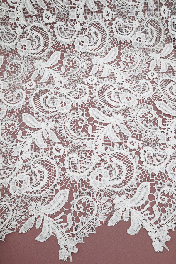 Renda Guipure marfim, com remate dos dois lados e preenchimento igual. |