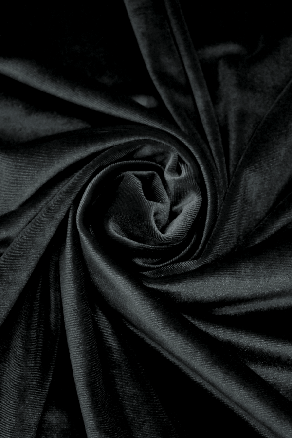 Veludo com elasticidade e ótimo cair, maleável, suave ao toque e lustroso. |
